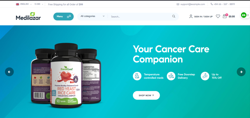 Responsive Medical Equipment & Drug Store & Pharmacy Shop eCommerce Elementor WooCommerce WordPress Theme is what you need. This amazing theme can help you to build your medical store, pharmacy store, drug shop,